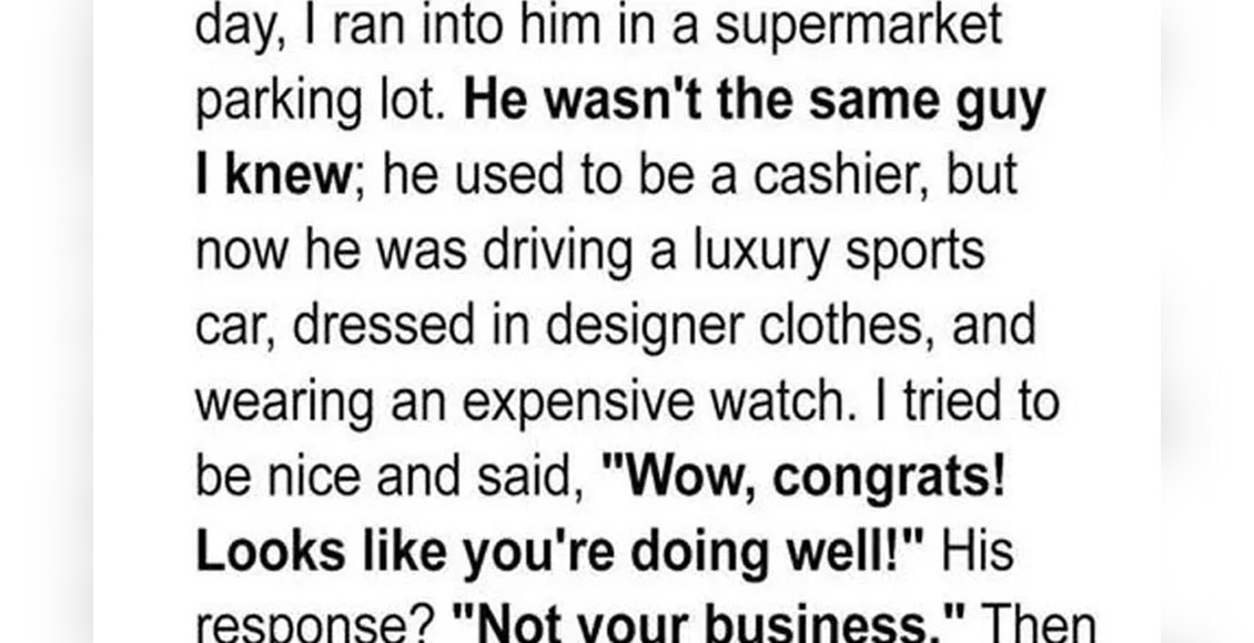 Michael, once a modest grocery store cashier, was now dressed in designer clothes, wearing a luxury watch, and exuding arrogance.